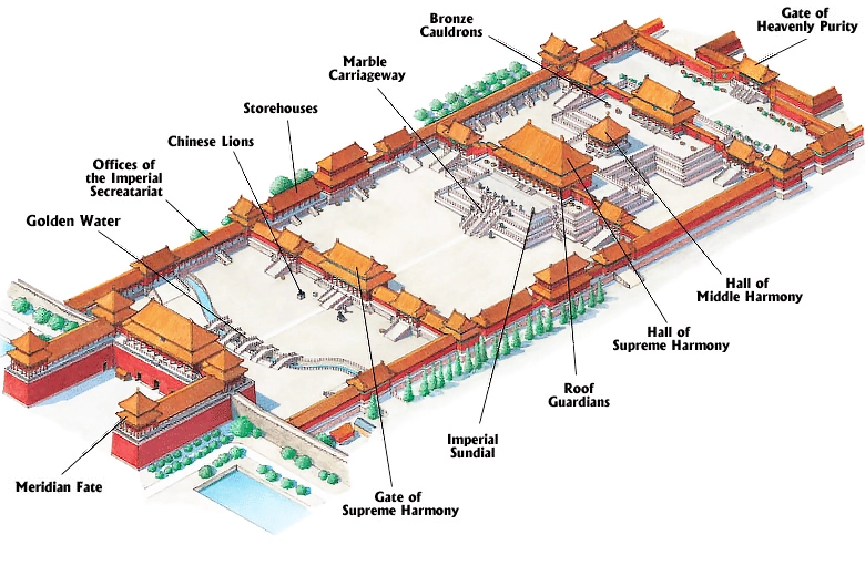 Emperors held important ceremonies. There are three main halls in the outer court along the central axis.
